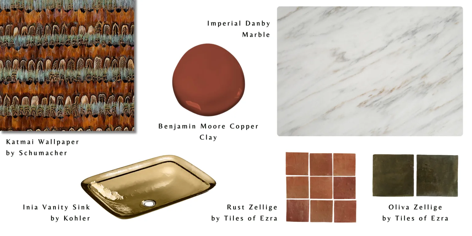 A palette inspired by the natural hues of autumn—think deep burgundies, burnt oranges, golden yellows, and earthy browns. Featuring textured wallpapers and stone, tile, and sinks that anchor each room in warmth and luxury. Embrace the Fall Harvest mood and let your interior design reflect the cozy and delightful spirit of autumn.
